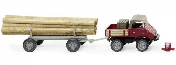 WIKING Forstmodell Unimog U 411 mit Langholzanhänger - braunrot | Fertigmodell 1/87