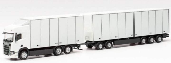 herpa 315517 Scania CR20 HD Schwedebcombi -unbedruckt weiss neutral- LKW-Modell im Maßstab 1:87 für Spur H0