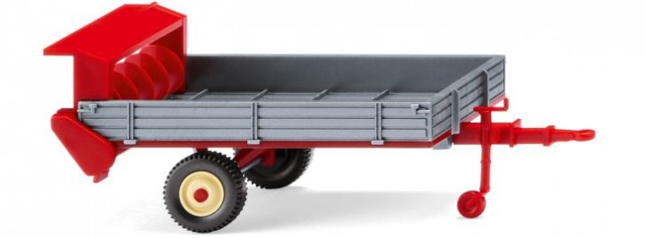 In den siebziger Jahren wurden die Landmaschinen durchaus innovativer. Das galt auch für die Farbgestaltung. Der Fortuna Stalldung-Breitstreuer erschien mit Alu-Planken und löste vielerorts damit die bis dahin übliche Holzversion ab. WIKING setzt die Bicolor-Gestaltung vorbildgerecht um, sodass der landwirtschaftliche Anhänger in der Modellpflege eine deutliche Aktualisierung erfährt. Der Miststreuer galt in den landwirtschaftlichen Betrieben als Dauerläufer, denn lange vor Beginn der intensiven Viehhaltung sorgte jeder Landwirt selbst für den Abtransport des Tierdungs – der Miststreuer mit heckseitig rotierender Schnecke gewährleistete per Hydraulikantrieb des Schleppers das Aufwirbeln des Ladegutes und eine flächendeckend gleichmäßige Verteilung auf den Feldern.