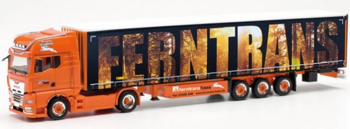 herpa LKW-Miniatur MAN TGX GX Individual 15m Gardinenplanen-Sattelzug "Ferntrans Haas" | Fertigmodell 1/87 Spur H0