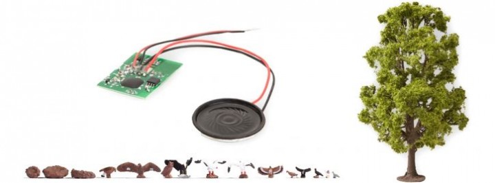 Durch die kompakte Bauweise der Platine mit Lautsprecher kann der Sound zielgenau dort eingebaut werden, wo er entstehen soll. Der Anschluss erfolgt über einen üblichen 16-V-Modellbahn-Trafo. Geeignet für Gleich- und Wechselstrom. Ton: Tweeet, tweeet!