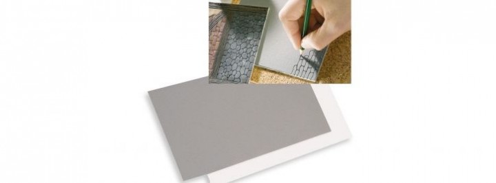 Ca. 3,5 mm dicke Feinschaumplatten mit einer speziellen Oberfläche für beliebige Struktur- und Prägebearbeitung: z.B. mit einem Blei- oder Buntstift eine Mauerstruktur zeichnen.