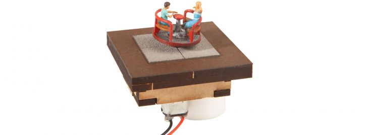Die handbemalten Spielgeräte und Figurenmodelle sind komplett montiert. Jedes Gerät wird von einem Motor, der sich direkt unter dem Modell befindet (Einbautiefe 35 mm) angetrieben. Die Mechanik für den Antrieb wird als Bausatz geliefert. Die mitgelieferte Elektronik wird an einen üblichen 16V Modellbahntrafo angeschlossen und ist für Gleich- und Wechselstrom geeignet. Die Geschwindigkeit des Spielgeräts kann auf der Platine eingestellt werden.