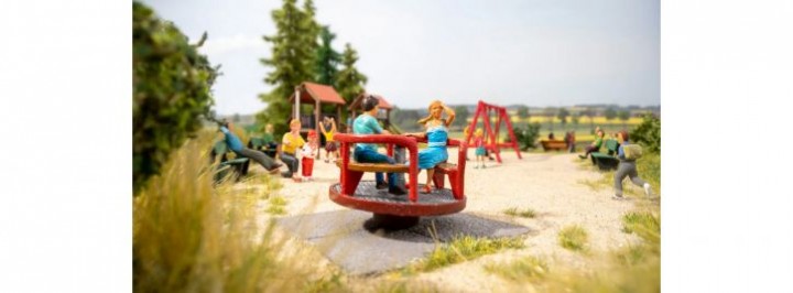 Das NOCH "micro-motion Kinderkarussell" eignet sich hervorragend, um einen Kinderspielplatz wie in der Wirklichkeit nachzugestalten und in Szene zu setzen. Das Kinderkarussell unter den Spielgeräten auf einem Spielplatz lieben wirklich alle Kinder. Mit aller Kraft wird der Kreisel in der Mitte gedreht, um eine schnelle Geschwindigkeit zu bekommen. Aber aufgepasst... richtiges festhalten am Rand ist sehr wichtig, um schlimme Unfälle zu vermeiden. Wenn man die Augen schließt spürt man die Drehungen noch intenstiver und man fühlt sich als ob man fliegen kann. Neben der Kinderschaukel, der Vogelnestschaukel, einer Rutsche und dem Sandkasten darf das Kinderkarussell auf keinem Spielplatz fehlen. Hier zeigt sich wer wirklich Kraft hat und das Karussell so richtig in Schwung bringt. Glücklich und schwankend von den starken Drehungen steigen die Kinder nach einer wilden Fahrt im Karussell aus und müssen aus dem Drehwurm erst einmal wieder rauskommen. Hier ist Spaß für Jung und Alt vorporgrammiert und wilde Fahrten bringen die Kinderaugen zum Leuchten.