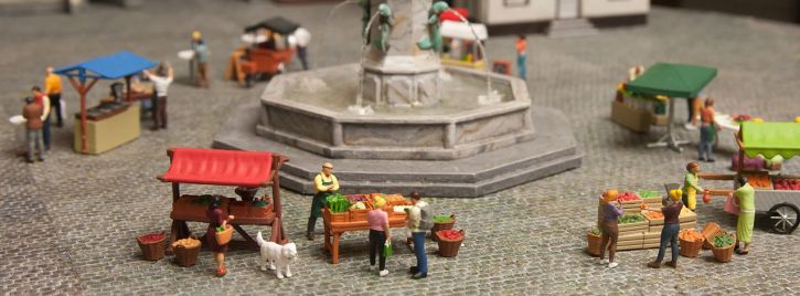 Der Wochenmarkt: ein Relikt aus den guten alten Zeiten und in den Zeiten des „buy local dennoch so aktuell wie nie. Gibt es etwas Schöneres als einen Dorfplatz mit einem bunten Markt? Verlockende Düfte, süße Früchte, frisches Gemüse, ein Eis für die Kinder und einen Kaffee für die Eltern. Gestalten Sie Ihre eigene kleine heile Welt mit den sechs neuen Figuren-Themensets. Jede Themenwelt enthält Figuren und reichhaltiges, hochdetailliertes Zubehör, mit denen Sie Ihre Lieblings-Szenen in Ihrer Modellwelt ausgestalten können! Alle Teile sind aufwendig in Handarbeit bemalt und werten jede Modell-Landschaft auf!