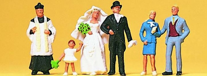 Preiser Figuren H0 "Brautpaar, katholischer Geistlicher" | 6 Figuren