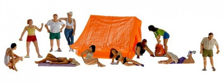 Preiser Figuren "Auf dem Campingplatz" im Maßstab 1/87 für Spurweite H0.