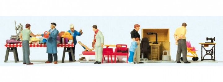 Preiser 10623 Figurenset mit Zubehör "Flohmarkt 4" Miniaturfiguren im Maßstab 1:87 für Spurweite H0
