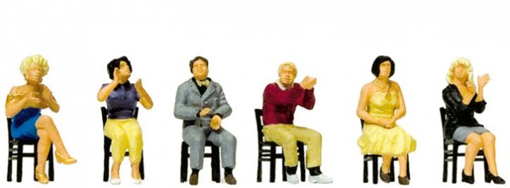Preiser Figuren Sitzende Zuschauer klatschend | 6-teilig | Spur H0 im Maßstab 1/87.