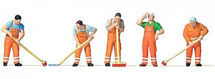 Preiser Miniaturfiguren "Straßenreinigung" zur Dekoration von Spurweite H0 Modellanlagen im Maßstab 1/87.
