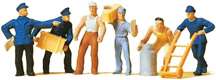Preiser Miniaturfiguren Güterbodenpersonal zur Ausschmückung von Spurweite H0 Modellanlagen im Maßstab 1/87.