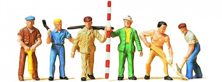 Preiser Miniaturfiguren Arbeiter zur Dekoration von Spurweite H0 Modellanlagen im Maßstab 1/87.