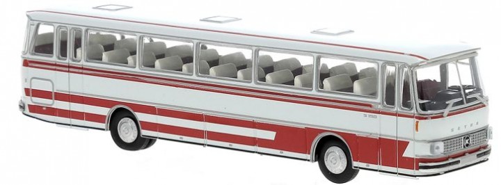 BREKINA 56055  Setra S 150H neutral -hellgrau und rot- (1970) Busmodell im Maßstab 1:87 für Spurweite H0
