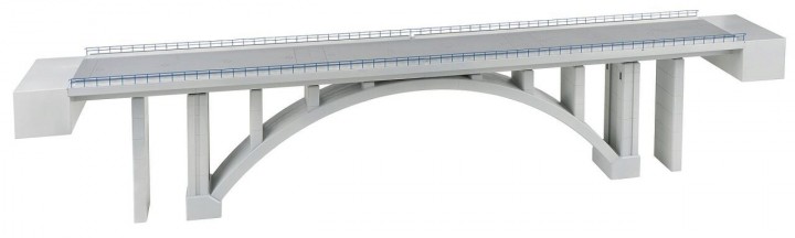 Faszination Brückenbau! Moderne, weitgespannte Betonbogenbrücke mit jeweils zwei anschließenden Brückenfeldern und Widerlagern in Anlehnung an die Thüringer Rehtalbrücke. 2-gleisig befahrbar und für alle Modellgleise verwendbar.