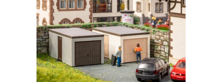 NOCH H0 Fertig-Garagen | 2 Stück | Laser-Cut Bausatz Spur H0 im Maßstab 1/87