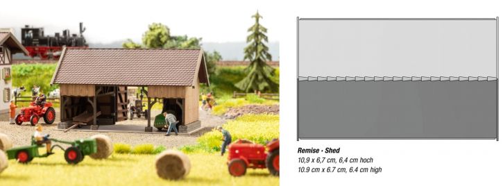 Eine Remise findet sich auf vielen größeren Höfen. Meist wurden diese nahe an der Grundstücksgrenze errichtet und dienten dem Unterstellen von Kutschen, Anhängern, Traktoren und landwirtschaftlichem Gerät. Das Modell weist rückwärtig ein großes, zweiflügliges Tor auf. Durch dieses können die Arbeitsgeräte direkt auf ein angrenzendes Feld ausgefahren werden.