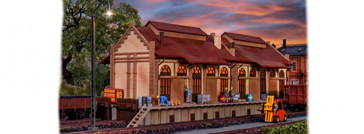 Der Güterverkehr der Eisenbahn beginnt und endet oft an einem Güterschuppen. Dort wird das Stückgut ein- und ausgeladen und an die Empfänger verteilt. Der Kunde kann einzelne Kisten, Fässer oder Paletten am Güterschuppen aufgeben. Die eingegangenen Waren werden nach Zielbahnhöfen sortiert in die Güterwagen geladen. Güterschuppen, Laderampen und Gepäckbahnsteige geben einer Bahnhofsanlage erst das richtige Gesicht und sollten auf keiner Modellbahnanlage fehlen.