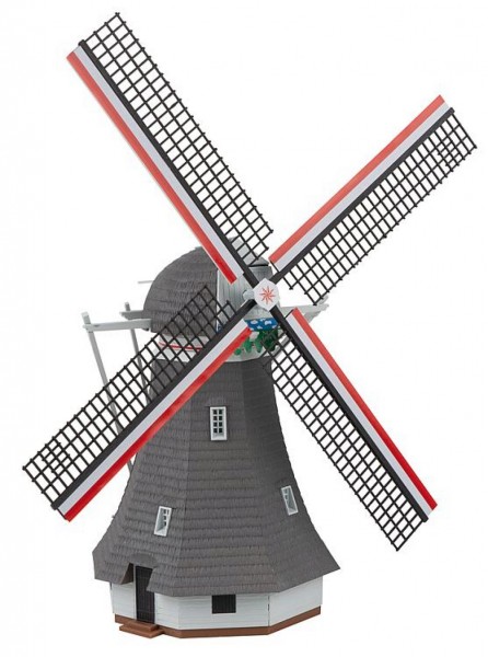 Windmühle in typischer Bauweise, wie man sie heute noch in den Niederlanden finden kann. Komplett mit Antriebsmotor (12–16 V, Wechselspannung) zum Betreiben der Windmühlenflügel.