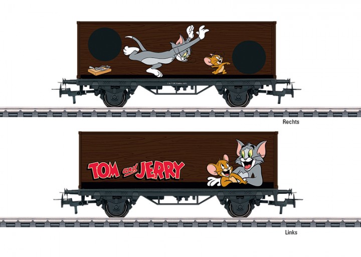 Containerwagen in toller Gestaltung zum Thema "Tom & Jerry". Wagen mit zwei Löchern in einer Seitenwand, welche passend zur Gestaltung "Mäuselöcher" darstellen. Mit RELEX-Kupplungen für schnelles und einfaches Kuppeln. Wagenlänge 12 cm.