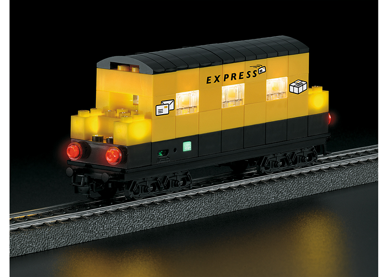Vierachsiger Wagen als Bausteinwagen mit dem Wagenaufbau eines Postwagens. Der Wagen ist mit den geläufigen Noppen versehen, die zum Bau mit Bausteinen einladen. Zum Bau des Wagenaufbaus liegt dem Artikel ein Bausatz für einen Postwagen bei. Dies ist ein Produkt der Marke LIGHT STAX und sollte nicht mit Produkten anderer Hersteller verwechselt werden. Der Bausatz enthält die Bausteine für den Wagenaufbau, die Mobile Power Einheit, die dazugehörige Bauanleitung und Sticker zur fiktiven Wagenbeschriftung. Bei den Bausteinen sind Lichtbausteine enthalten, die einzelne Details des Wagens zum Leuchten bringen. Die Mobile Power Einheit verfügt über 4 Lichtfunktionen: Permanentes Leuchten, Blinken, Auf- und Abdimmen oder geräuschabhängiges Leuchten (z.B. im Rhythmus deiner Lieblingsmusik). Alle Funktionen sind dabei im Dauerbetrieb nutzbar. USB Ladekabel im Lieferumfang enthalten.