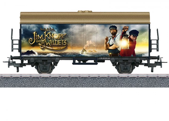 Güterwagen in toller Gestaltung zum Thema "Jim Knopf und die Wilde 13". Relex-Kupplungen für schnelles und einfaches Zusammenkuppeln. Länge über Puffer 11,5 cm. Gleichstromradsatz E700580 separat erhältlich.