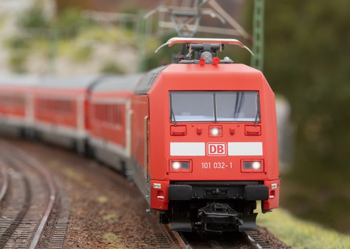 Mit Digital-Decoder mfx+ und umfangreichen Geräuschfunktionen. Geregelter Hochleistungsantrieb. Vier Achsen angetrieben. Haftreifen. Fahrtrichtungsabhängig wechselndes Dreilicht-Spitzensignal und zwei rote Schlusslichter konventionell in Betrieb, digital schaltbar. Fernscheinwerfer separat schaltbar. Führerstandsbeleuchtung digital schaltbar. Spitzenlicht an Lokseite 2 und 1 jeweils separat digital abschaltbar. Wenn Spitzensignal an beiden Lokseiten abgeschaltet ist, dann beidseitige Funktion des Doppel-A-Lichts. Beleuchtung mit wartungsfreien warmweißen und roten Leuchtdioden (LED). Kulissengeführte Kupplung. Länge über Puffer 21,9 cm.