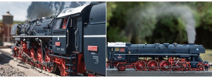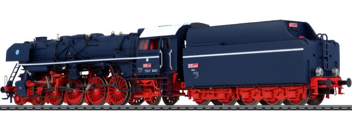 Modell: Mit Digital-Decoder mfx und umfangreichen Licht- und Soundfunktionen. Geregelter Hochleistungsantrieb mit Schwungmasse im Kessel. 4 Achsen angetrieben. Haftreifen. Lokomotive und Tender weitgehend aus Metall. Serienmäßig eingebauter Raucheinsatz, mit geschwindigkeitsabhängigem, dynamischem Rauchausstoß, digital schaltbar. Fahrtrichtungsabhängig wechselndes Dreilicht-Spitzensignal an Lok und Zweilicht-Spitzensignal am Tender konventionell in Betrieb, digital schaltbar. Oberes Spitzenlicht separat schaltbar. Beleuchtetes Loknummernschild am oberen Spitzenlicht integriert und funktionsfähig. Führerstandsbeleuchtung digital schaltbar. Beleuchtung mit wartungsfreien warmweißen Leuchtdioden (LED). Verstellbare Kurzkupplung mit Kinematik zwischen Lok und Tender. Am Tender kinematikgeführte Kurzkupplung mit NEM-Schacht. Pufferhöhe an Lok und Tender nach NEM. Bremsschläuche, Schraubenkupplungsimitation und ein Luftbehälter zum Ansetzen an den Tender liegen bei. Befahrbarer Mindestradius R2=437,5 mm. Länge über Puffer ca. 29,3 cm.