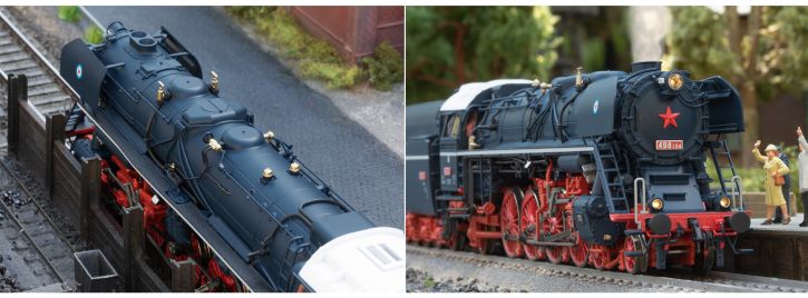 Vorbild: Schwere Schnellzug-Dampflokomotive mit Schlepptender der Baureihe 498.1. Ausführung als Museumslokomotive 498.104 der Železnice Slovenskej Republiky (ŽSR). Aktueller Betriebszustand, so wie die Lokomotive derzeit betriebsfähig in Bratislava beheimatet ist.