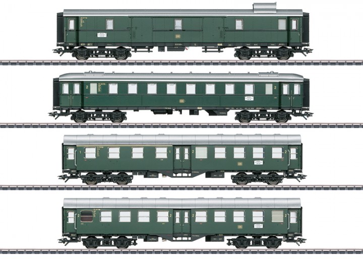 Alle Wagen mit serienmäßig eingebauter LED-Innenbeleuchtung und stromführenden Kurzkupplungen. Über die eingebauten stromführenden Kurzkupplungen kann der ganze Wagenverband über den Dieseltriebwagen VT 92.5 (Artikel 39692) mit Strom versorgt werden. Innenbeleuchtung über den Dieseltriebwagen digital schaltbar. Gesamtlänge über Puffer 91,8 cm.