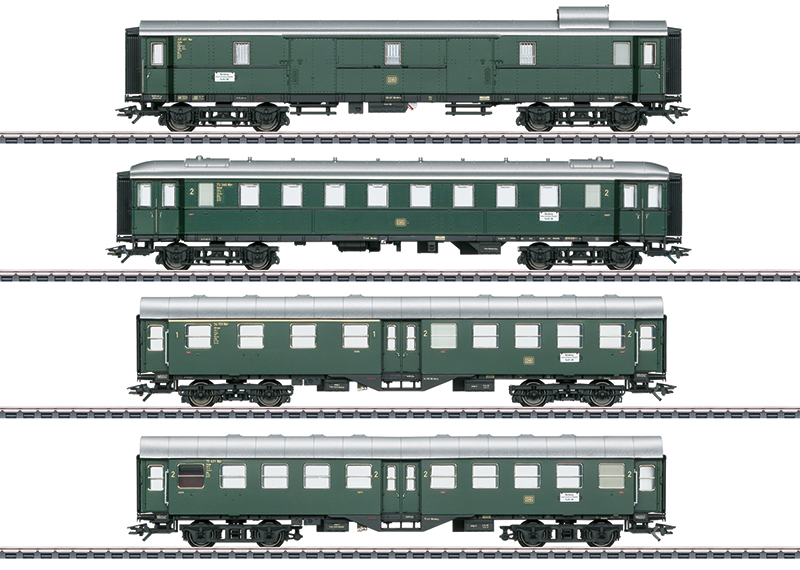 Alle Wagen mit serienmäßig eingebauter LED-Innenbeleuchtung und stromführenden Kurzkupplungen. Über die eingebauten stromführenden Kurzkupplungen kann der ganze Wagenverband über den Dieseltriebwagen VT 92.5 (Artikel 39692) mit Strom versorgt werden. Innenbeleuchtung über den Dieseltriebwagen digital schaltbar. Gesamtlänge über Puffer 91,8 cm.