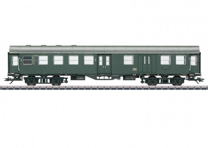 Umbauwagen 2. Klasse mit Gepäckraum mit Drehgestellen preußischer Bauart. Vorbereitet für Strom führende Kupplungen 7319 oder 72020/72021, Schleifer 73405 und Innenbeleuchtung 73400/73401. Ein Schiebebildsatz mit verschiedenen Zugläufen liegt bei.