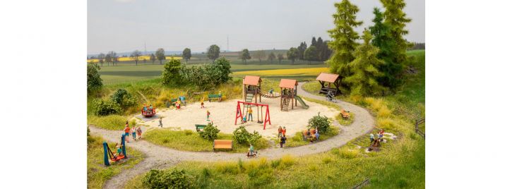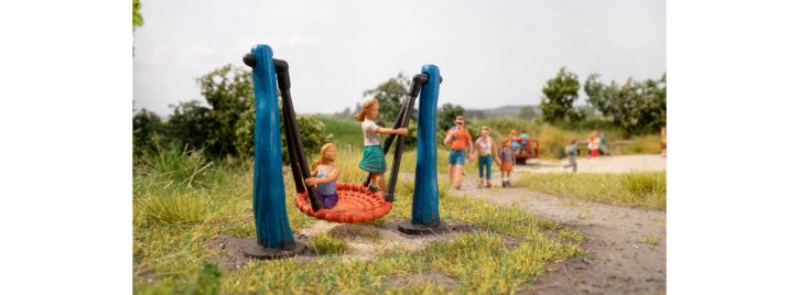 Die NOCH "micro-motion Vogelnestschaukel" eignet sich hervorragend, um einen Kinderspielplatz wie in der Wirklichkeit nachzugestalten und in Szene zu setzen. Gemeinsam mit dem besten Freund steht man am Rande der Nestschaukel und holt Schwung, um hoch hinaus zu schwingen. Das kribbelt im Bauch und man möchte immer noch höher kommen. Wenn man mal eine kleine Pause braucht legt man sich einfach in die Vogelnestschaukel und schaut in den blauen Himmel. Das leichte Schwingen nebenher lässt einen richtig entspannen und runterfahren. So ein Tag auf dem Spielplatz und einer Vogelnestschaukel ist doch wirklich was schönes. Neben der Vogelnestschaukel dürfen weitere Spielgeräte wie ein Kinderkarussell, eine Wippe oder auch ein Sandkasten nicht fehlen. Hier leuchten wirklich alle Kinderaugen und ein Tag auf dem Abenteurespielplatz lässt sowohl Jung als auch Alt zusammen Spaß haben.