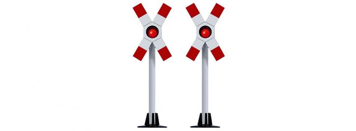 2 typische Andreaskreuze wie sie in der ehemaligen DDR zum Einsatz kamen und auch heute noch Verwendung finden. Eine elektronische Blinkschaltung und LEDs sorgen für wartungsfreien Dauerbetrieb.